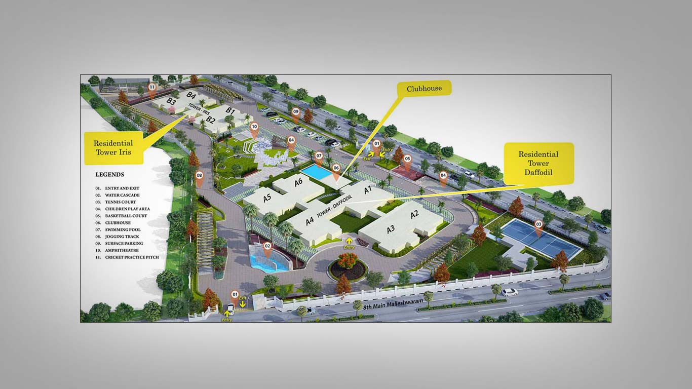 Step into a new dimension of unparalleled luxury at Sattva Luxuria. Choose from a lavish range of super-luxurious 3 BHK Apartments and 4 BHK Apartments and Penthouses in the beautiful Malleshwaram, Bangalore. The project being spread across 4 acres of pristine land, find yourself residing in one of Bangalore’s most sought after projects that will suit your successful lifestyle.